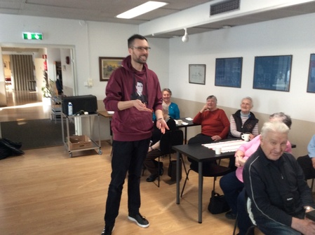 Sedan lunchen i januari har vi träffats tre gånger. Vi har spelat bingo, fått info om räntor och placeringar av S-E Holmström och Isa Fagerström från Aktia banken. Senaste hade vi besök av Bernhard Lundström som underhöll oss med låtar av Tore Skogman samt ledde allsången med oss. Söndagen den 2.3. var vi på teater till Tenala och tittade på farsen ”Titta inte i kassen”. Det var en pjäs som satte skrattmusklerna på prov. En riktigt rolig eftermiddag. Vi har nästa möte 10.3 med info om seniorrådgivning.
