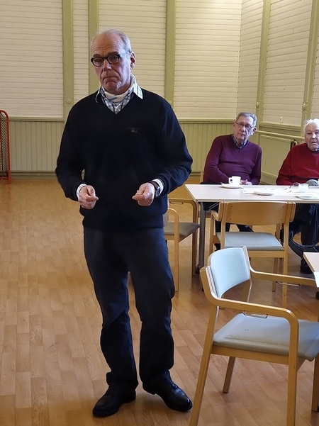 Ordförande Harding Lindholm öppnade mötet med att önska all välkomna och en önskan om ett gott nytt å. Efter det uppvaktades vår medlem Ralf Friberg för det omfattande arbete, nationellt och internationellt, som han gjort för oss pensionärer. Internationellt har han representerat Pensionstagarnas Centralförbund i Europeiska Seniororganisationen som styrelsemedlem åren 2004 till 2014. I organisationen AGE som ersättare under samma tid. I Nordiska samarbetskommitténs styrelse 2004 till 2013. I förbundet har Ralf suttit i styrelsen 2004 till 2007, sedan som fullmäktiges ordförande under tiden 2007 till 2010 och nu senast som vice ordförande 2011 till 2014.