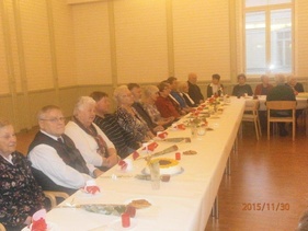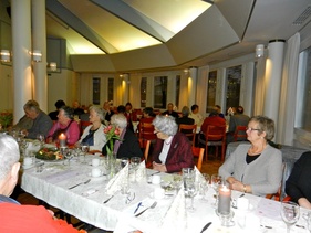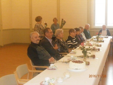 Den 1 december samlades drygt 50 medlemmar för att fira de som fyllt jämna 5 år, från 70 och 90 + under året. Av 28 medlemmar som fyllt, var 16 närvarande, äldst var Anita Vesterlund som fyllt 85 år. Tyvärr ingen 90+. "Köksflickorna" hade borden fint dukade med ljus och blommor. Stämningen var hög när alla jubilarer och andra började anlända.