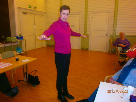 Måndagen den 23 hade vi besök av riksdagsledamot/kandidat Maarit Feldt-Ranta för att få lite info om SOTE-reformen. Ordförande hälsade välkommen och så blev det kaffe och bullar.