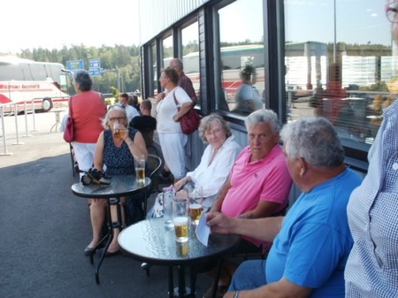 Onsdagen den 6 augusti i soligt sommarväder startade vi vår hemliga resa, tillsammans med Ekenäsnejdens Invalider. Resans mål var ju okänt och förväntningarna var höga vart vår reseledare Eila skulle föra oss denhär gången. Färden gick västerut med trygga chauffören Thomas vid ratten. Första pausen gjorde vi i Lehmirannan Lomakeskus som ligger i Salo. Där drack vi kaffe och åt paj. För de flesta var den natursköna platsen helt okänd trots att den ligger så nära i grannstaden. Efter pausen fortsatte resan till Muurla Design där vi fick se glasblåsare i arbete, samt bekanta oss med deras produkter. I ögonfallande var de många olika Mumin sakerna. Några passade också på att göra inköp och fylla på sina inventarier. När vi pausat en stund fortsatte vi mot Sammatti där vi åt lunch i Sammatin Kievari, en före detta skola som gjorts om till restaurang. När vi fyllt magarna med den rikliga och goda maten, satte vi oss i den svala och sköna bussen, för att fortsätta resan genom orten. Eila berättade då att hon hade sina släktingar och rötter där. Färden fortsatte genom Antskog och Fiskars där vi inte stannade denhär gången utan sökte oss hemåt. Dagens resa var mycket lyckad och alla var på gott humör. Lite vemodigt var det ändå när Eila tackades för sin sista resa som reseledare för vårt gäng. Många kryssningar och resor till kända och okända mål har vi fått vara med om under hennes trygga ledarskap. Tack för det.