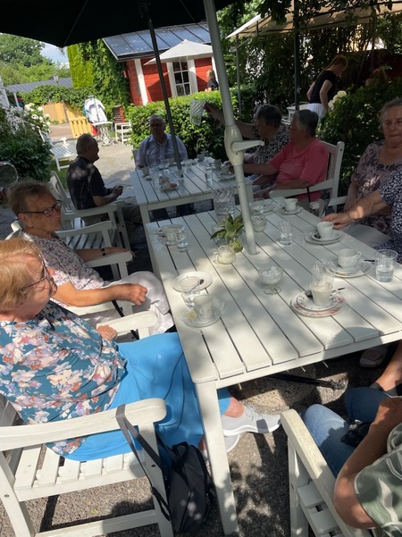 Onsdagen den 6 augusti i soligt sommarväder startade vi vår hemliga resa, tillsammans med Ekenäsnejdens Invalider. Resans mål var ju okänt och förväntningarna var höga vart vår reseledare Eila skulle föra oss denhär gången. Färden gick västerut med trygga chauffören Thomas vid ratten. Första pausen gjorde vi i Lehmirannan Lomakeskus som ligger i Salo. Där drack vi kaffe och åt paj. För de flesta var den natursköna platsen helt okänd trots att den ligger så nära i grannstaden. Efter pausen fortsatte resan till Muurla Design där vi fick se glasblåsare i arbete, samt bekanta oss med deras produkter. I ögonfallande var de många olika Mumin sakerna. Några passade också på att göra inköp och fylla på sina inventarier. När vi pausat en stund fortsatte vi mot Sammatti där vi åt lunch i Sammatin Kievari, en före detta skola som gjorts om till restaurang. När vi fyllt magarna med den rikliga och goda maten, satte vi oss i den svala och sköna bussen, för att fortsätta resan genom orten. Eila berättade då att hon hade sina släktingar och rötter där. Färden fortsatte genom Antskog och Fiskars där vi inte stannade denhär gången utan sökte oss hemåt. Dagens resa var mycket lyckad och alla var på gott humör. Lite vemodigt var det ändå när Eila tackades för sin sista resa som reseledare för vårt gäng. Många kryssningar och resor till kända och okända mål har vi fått vara med om under hennes trygga ledarskap. Tack för det.